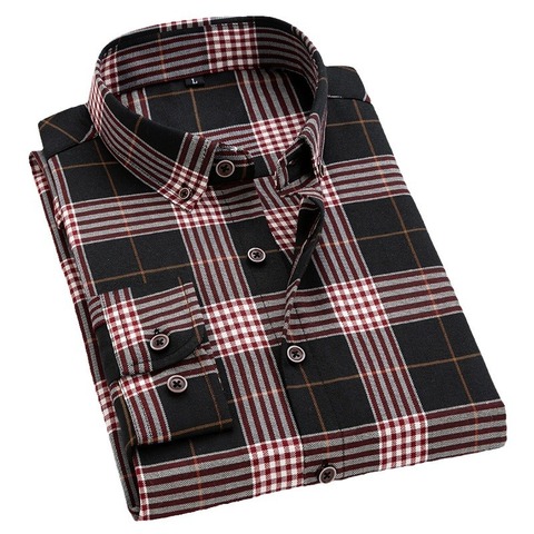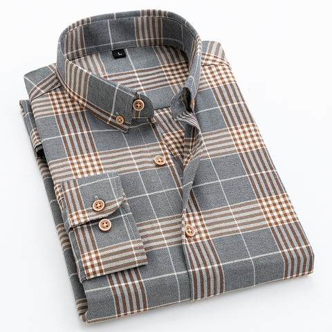เสื้อเชิ้ตออกซ์ฟอร์ดแขนยาวของผู้ชายออกแบบลายสก็อตลำลองเหมาะสำหรับใส่ทำงานหนุ่มวัยกลางคนขนาดพิเศษสไตล์ตะวันตก